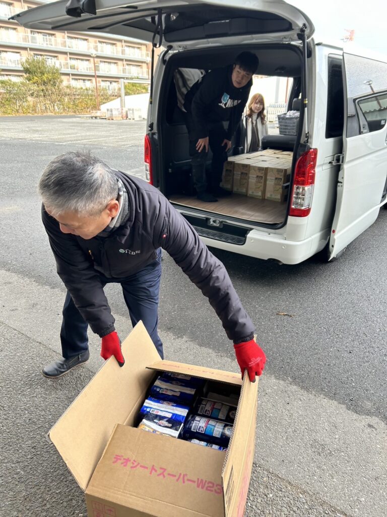 社員数名の協力のもと、必要とされる物資の支援を行いました。